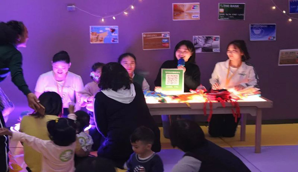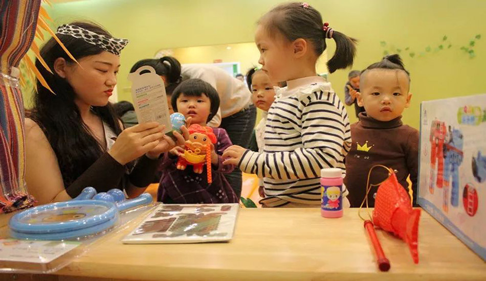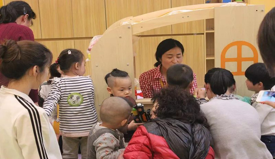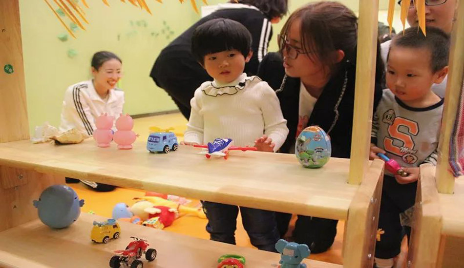 宝贝们第一个来的是等价屋,每个宝贝都有自己的摊位,等价屋的主题就是引导宝宝体验等价物物交换。