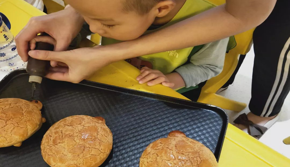 宝贝们亲手制作了香喷喷的乌龟菠萝包