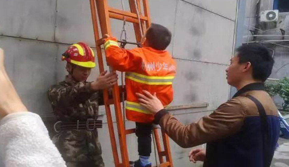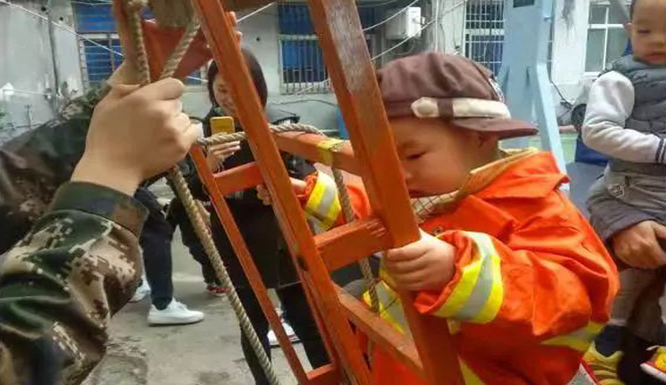 爬上云梯,体验消防员叔叔的辛苦
